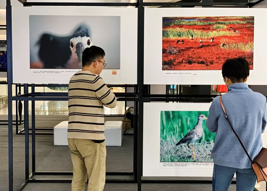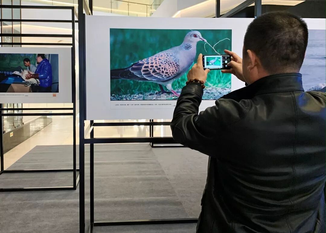 最后,为了让更多人加入护鸟公益,一起助力鸟类保护事业,他们还邀请让候鸟飞,在现场布置了一线护鸟摄影展,主题内容涵盖这些年来各地护鸟人的一线行动,和护鸟摄影师记录下鸟儿之美。