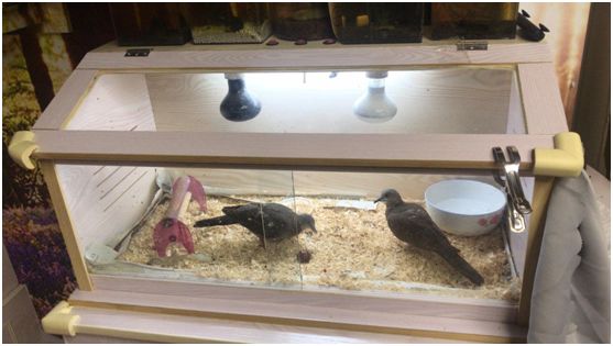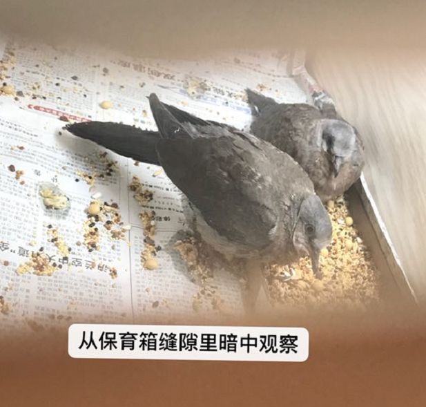 小葛姐姐天天把两只可怜的小家伙带在身边悉心照料,一直到它们长到了20多天,到了野生环境下珠颈斑鸠离巢单过的年纪,但是小葛姐姐家中实在没有条件对这两只珠颈斑鸠进行野化训练,需另寻接力人,恰巧,一位在今年春季接受过鸟医部培训的学员Zora,表示愿意接力。于是……