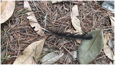 很欣慰的是,在四天后我再去野放地点,发现了一根换羽期珠颈斑鸠换下的飞羽,这附近出没的一对斑鸠早就成年,会留下这根飞羽的,只可能是突然从别处造访的换羽期珠颈斑鸠或是1号,据我半年来的观察,一直都没发现有啥外来的珠颈斑鸠,所以极大概率这根飞羽是1号留下的,地上的谷子也被吃了个七七八八,想来1号应该是成功熬过了最初的几天适应期吧。