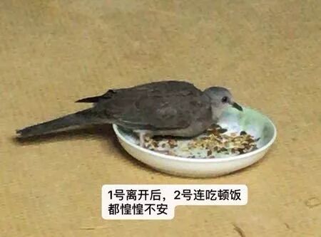 都说珠颈斑鸠是养不熟的野鸽子,很多接触过珠颈斑鸠的人可能会觉得它们无情无义,实际接触下来,我也确实觉得在鸟类当中,它们的智商实在算不得高,但是不得不说,它们也是非常有感情的:幼小无助时对我的全心依赖;我扮演“恶人”之初不依不饶地信任我、亲近我;2号在1号走后的失落和彷徨,从来不往外张望的2号,在1号野放后,天天都站在窗口,想着撞开窗户飞出去寻找1号,甚至向我发出了“叽叽”的示好声,想和我“重修旧好”(这是我唯一一次差点放弃继续狠心吓唬它);还有1号停在桂树枝头上看着我的眼神里的,那一点点描述不清的情绪。