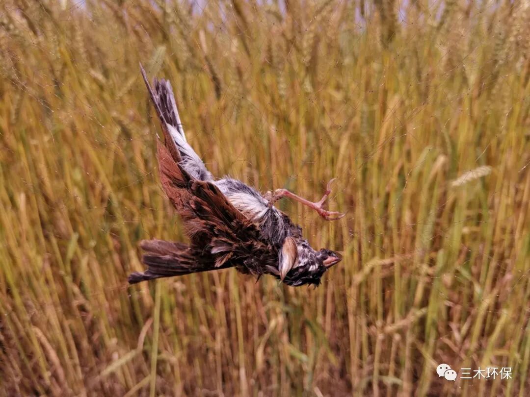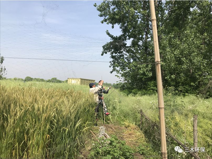每片麦地,都有三至四张捕鸟网围着,我们经过考虑,与海宁森林公安取得了联系,森林公安安排了村干部前来陪我们一起拆除农田、果园中的捕鸟网。