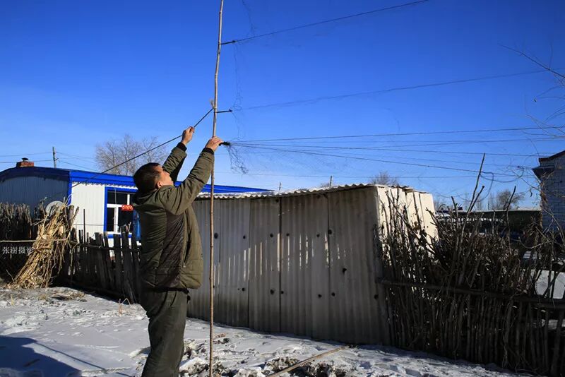 每当路过村屯,付建国看到粘鸟网就下车拆除。