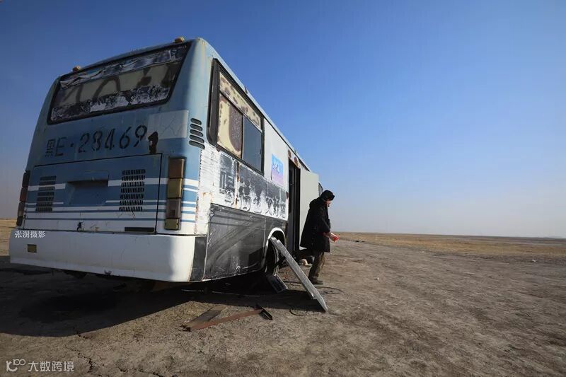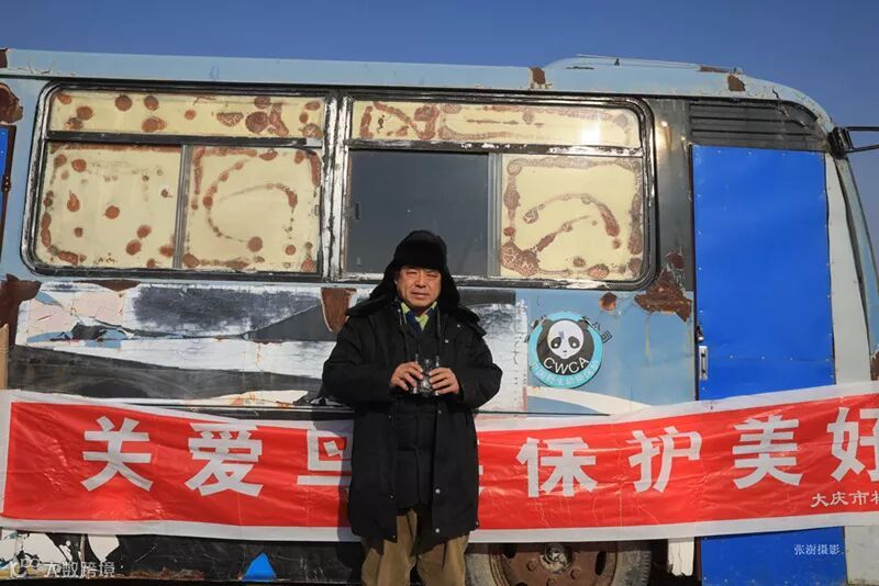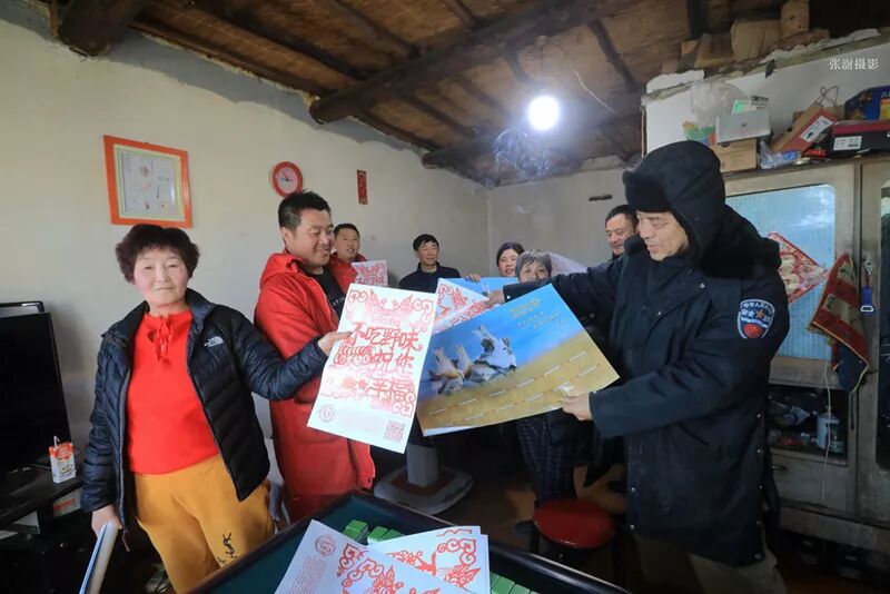 有一条通向湿地深处的土路经过松鹤岛,春夏如果雨水多,路就会被淹没,护鸟、出行,都要靠划船。冬天,湿地封冻,土路颠簸,巡视时,付建国更喜欢开着四处漏风的微型车走冰面。