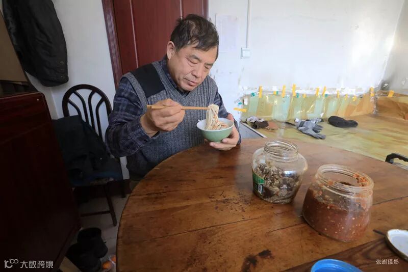 住在岛上,付建国为了省事,常是煮一匝挂面,就着辣椒酱等咸菜对付一口。
