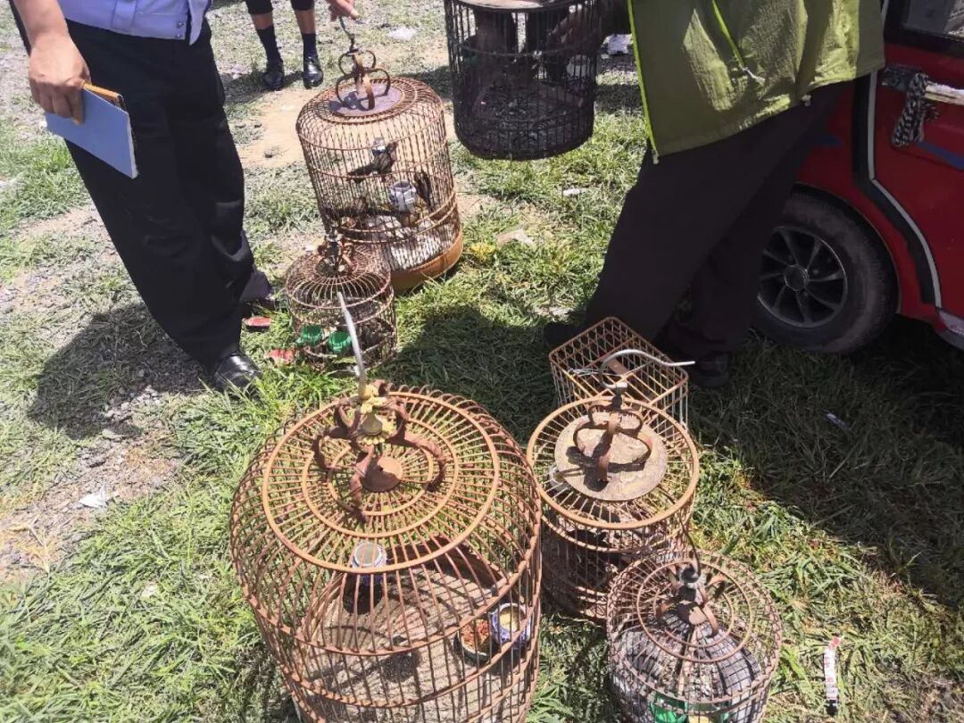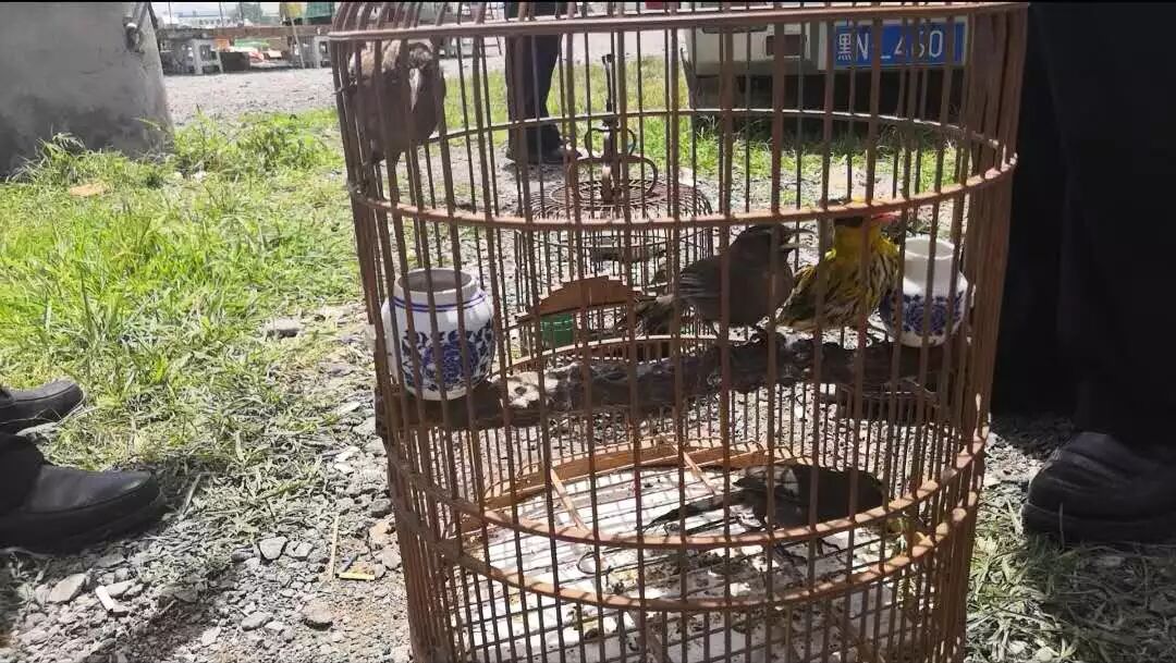 登记鸟贩个人信息,将相同种类归一,在此期间,执法人员让鸟贩自行倒鸟入笼,鸟贩狡猾,为了规避减轻处罚可能,故意“不小心放走”7只山画眉一只黄腹山雀。