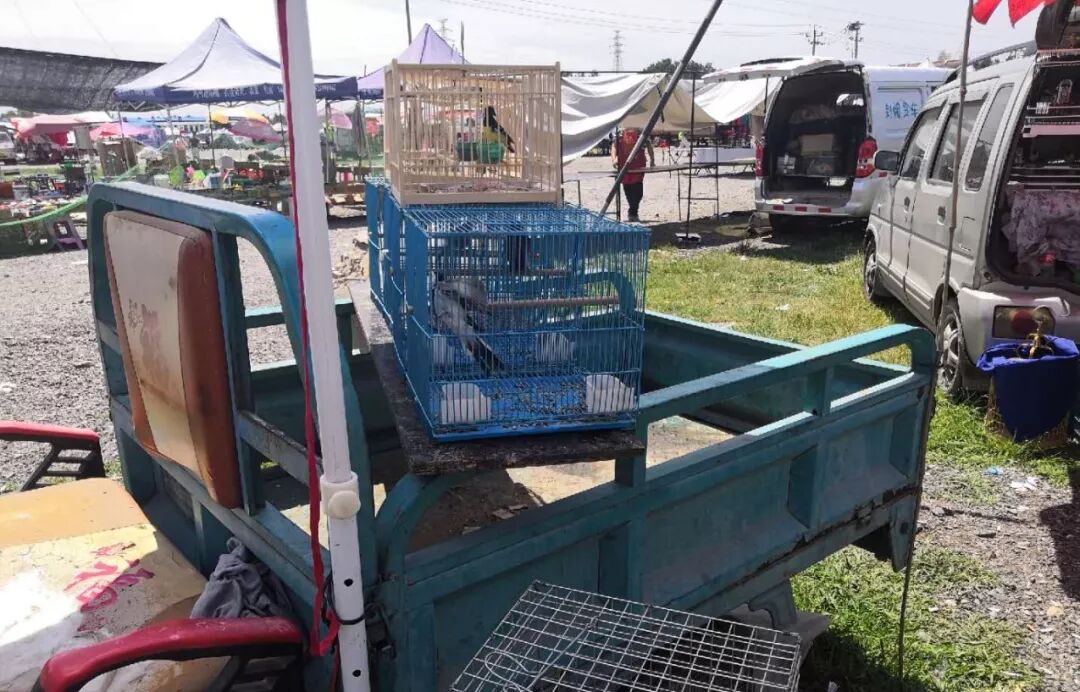 邻近午间,终于,在集市的东北角几个吃快餐的摊位旁边,队员发现了聚在一起的三个摊位,不出意外,三个摊位摆放张挂的野生鸟种类繁多,但时间已经正午太阳当头顾客不是很多。
