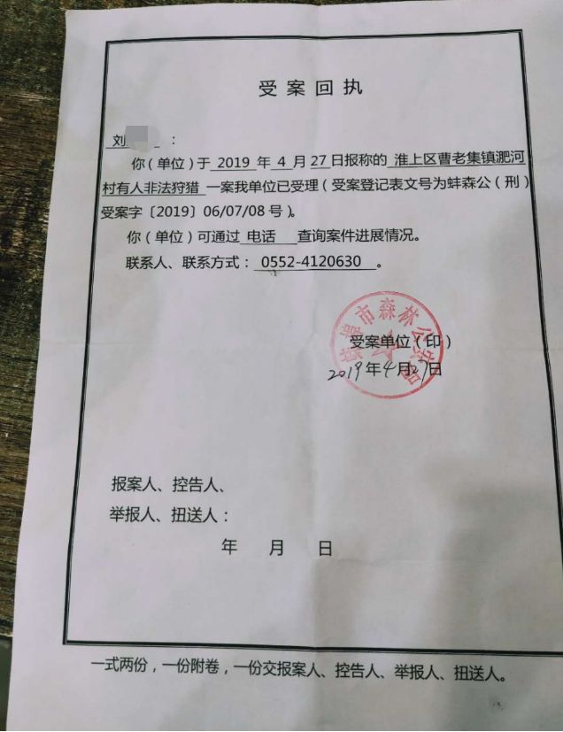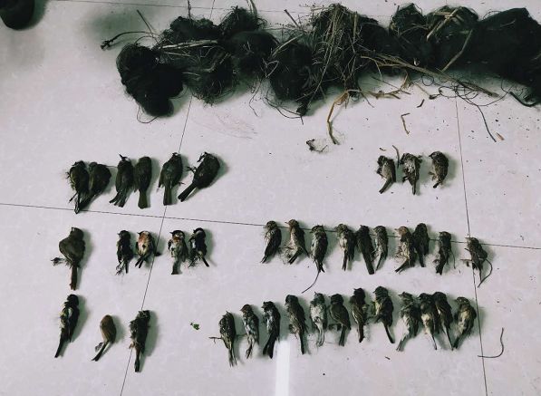 4月18日,来到天津武清区二光果园,发现2张捕鸟网,在捕鸟人家果园的小棚子里有6只候鸟,10几张捕鸟网,此案已经立案侦查。