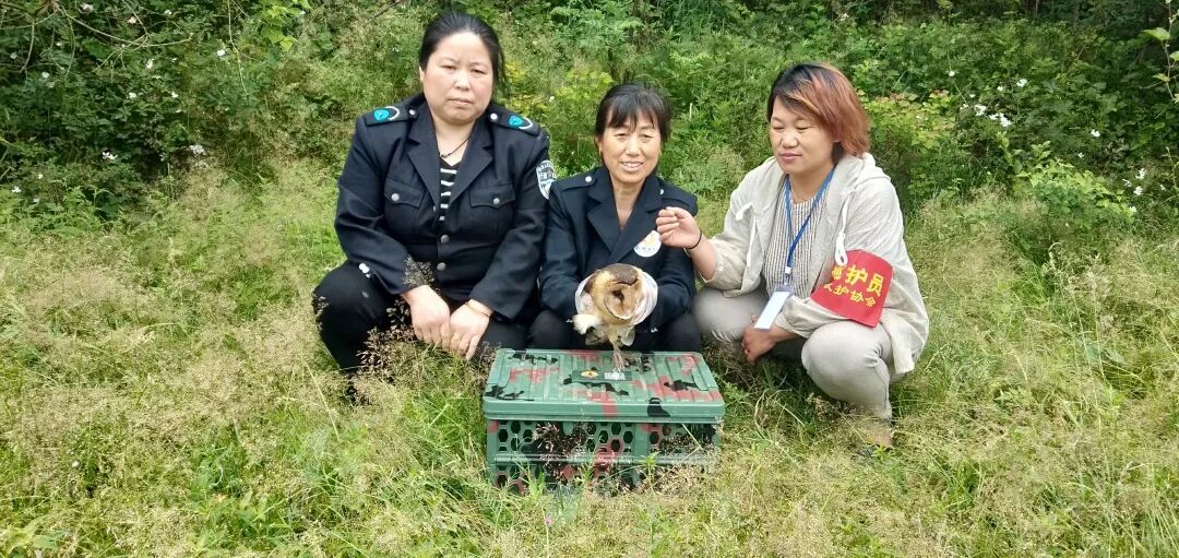 3、4月13日,接贫困户“二保”送交的角鸮,并于当天晚上野放;