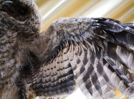 羽鞘中正在钻新羽的灰林鸮幼鸟