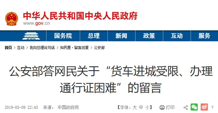 针对“货车24小时禁行,通行证难办”问题,公安部发表明确态度!