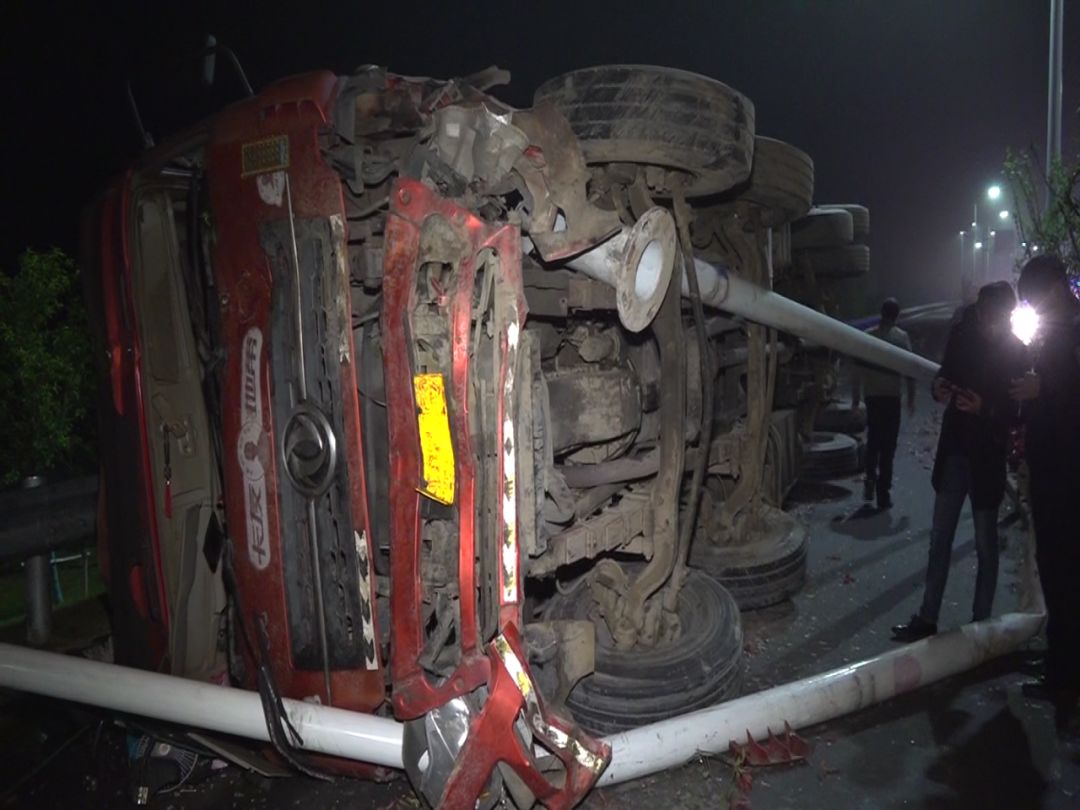 "当时我正常行驶,突然从中间绿化带里面窜出一条狗。"驾驶员苏某说,当时吓得他猛打了一个方向,结果货车撞到路灯杆子后侧翻。