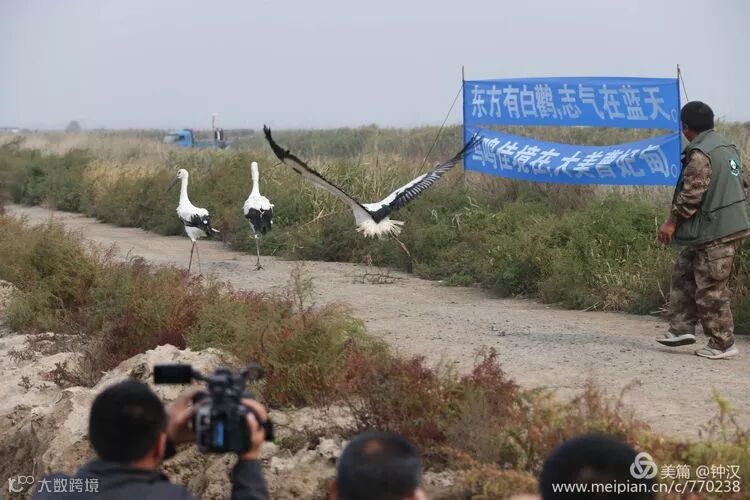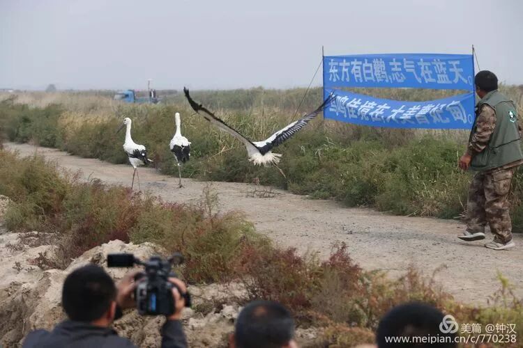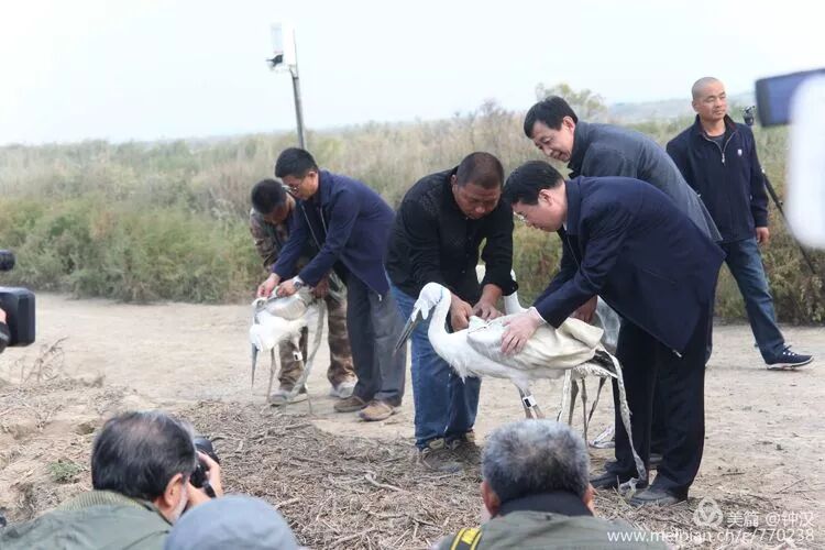 2018年10月15日上午,在曹妃甸湿地成功放飞3只东方白鹳。巡视专员、省、市有关部门的领导以及野保志愿者参加了放飞活动,央视和市、县电视台记者直播采访。