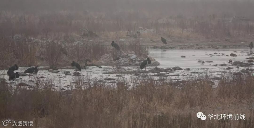 12月3日,华北环境前线总队巡护中华黑鹳保护地,冶河湿地中栖息过冬的黑鹳群、白鹭、苍鹭、赤麻鸭、斑嘴鸭、绿头鸭等水鸟,未发现捕猎电鱼等违法现象。