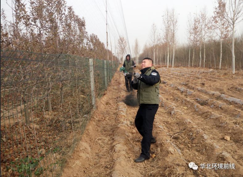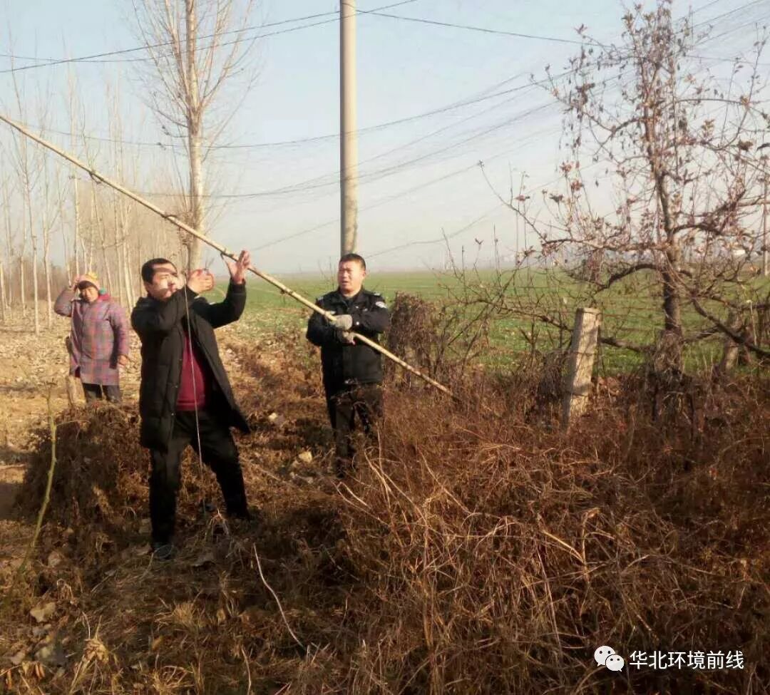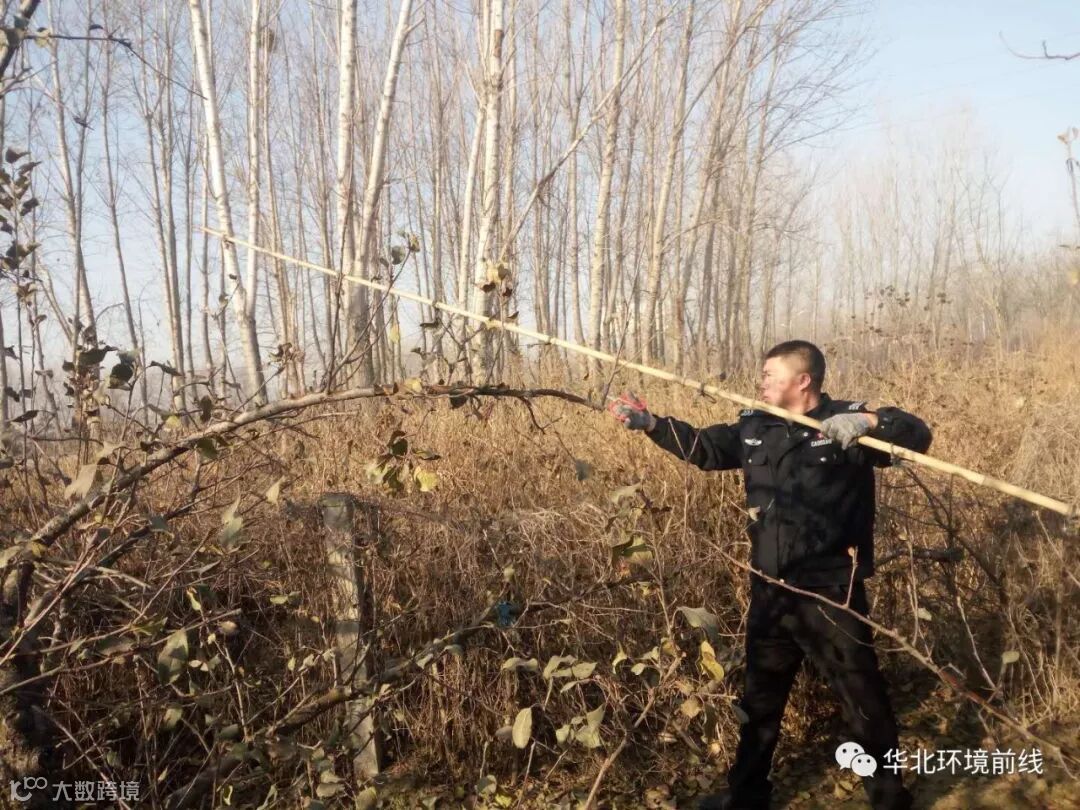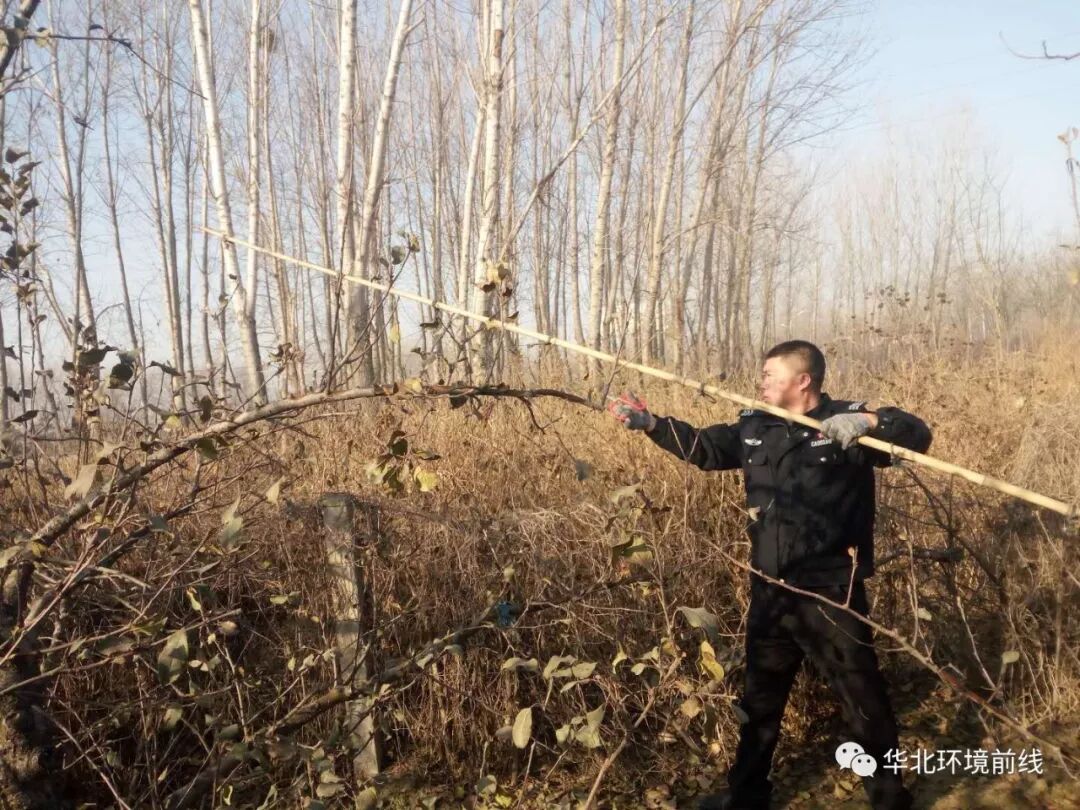 12月16日,华北环境前线邯郸分队组织志愿者进行正常巡护,在行至成安县开往魏县路途中发现一处高约5米、长约150米的捕鸟网,网上有10多只已死去和干枯的鸟尸,即刻动手拆除,将拆下的网和鸟尸进行无害化处理。