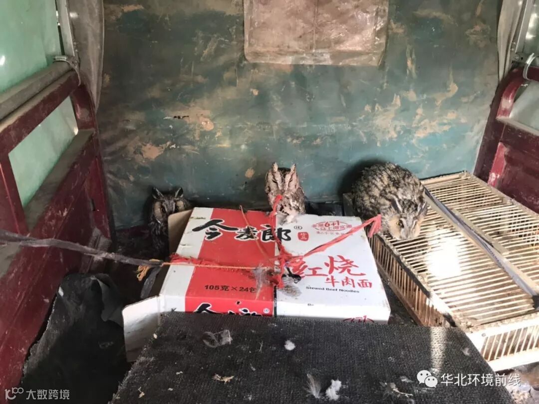 12月12日,接到志愿者举报元氏一农贸市场有人贩卖野生动物,华北环境前线总队、正定新区分队联合石家庄市森林公安局和元氏县森林公安局执法人员赶到元氏一农贸市场。在市场的最南侧发现了一个三轮车上有2只长耳鸮、1只领角鸮。石家庄市森林公安张新局长和元氏县森林公安李丙乾局长当场下令先扣留保护动物和其他野生鸟类,并当场控制非法捕猎野生动物并销售贩卖的嫌疑人。此事件元氏县森林公安局已经立案调查,案件正在进一步调查中。