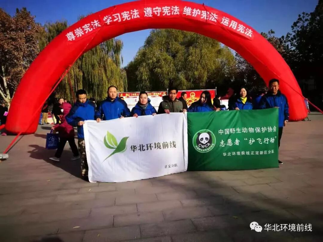 12月4日,国家宪法日,正定新区分队在常山公园发放保护环境、爱鸟护鸟、保护野生动物宣传册。