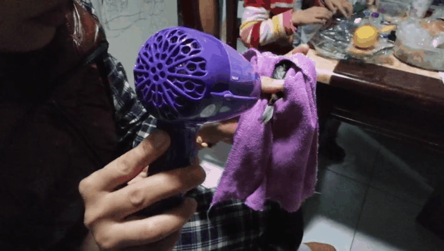 接下来,就是给麻雀洗澡了。用宠物浴液轻轻清洗羽毛,冲干净,用毛巾擦干,再用吹风机吹干即可。