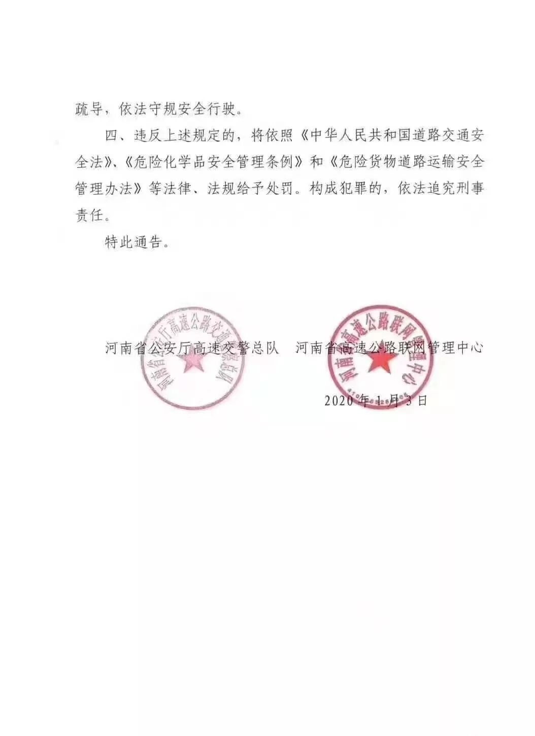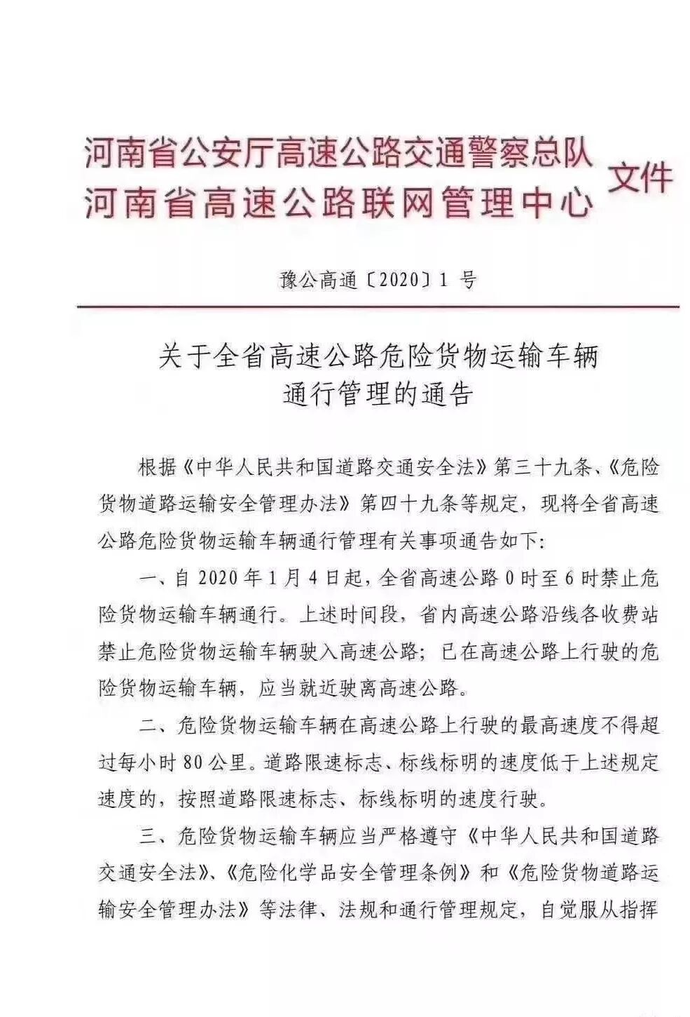 关于河南省高速公路危险货物运输车辆通行管理的公告