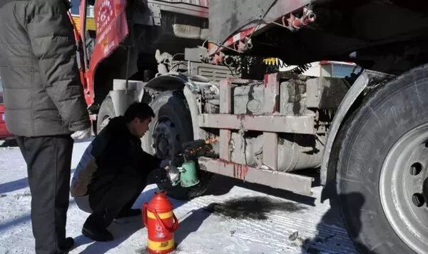 防滑链不是冰冻雨雪天气上坡的专属,在遇到有冰冻路面时,及时在驱动轮以及导向轮上安装防滑链。
