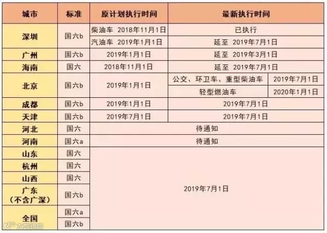 2月17日,广州市生态环境局发布消息,广州执行轻型汽车国六b阶段排放标准的时间由2019年3月1日调整至2019年7月1日,并设置2个月过渡期,方便市民办理车辆登记上牌手续。除广州目前延迟于2019年7月1日,其他地区也有相应的调整: