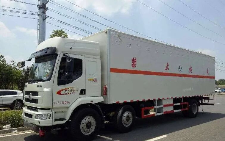 承载易燃易爆品时,车辆排气管应安装隔热和熄灭火星装置,并配装符合JT230规定的导静电橡胶拖地带装置。桶装危险品的桶与桶之间要用编织袋充填空隙。容器罐装液体时,应预留容积不得少于总容量5%的膨胀余量。装载有毒有害货物时,要站在上风处。更要注意,装载的任何化工产品都要加盖雨布,以防交会车时飞落的烟头。