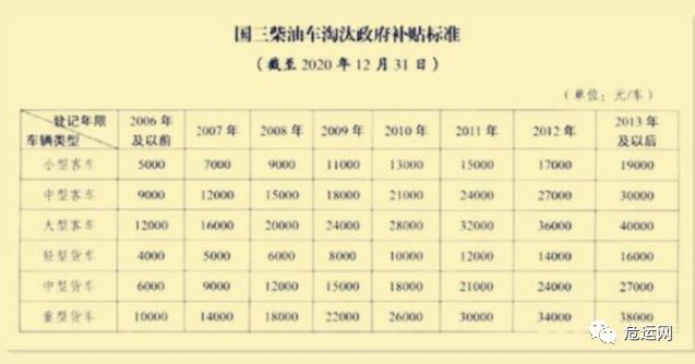 那现在还有不少国三车上路都没几年,一些司机的贷款都没有还上就遭受了迎头暴击,还好现在不少省市都相继出台了报废国三车补偿标准。