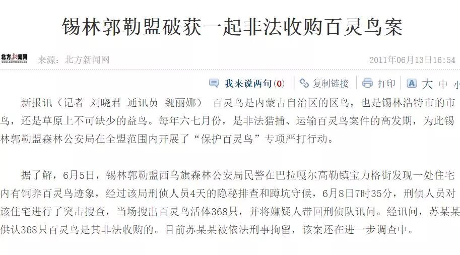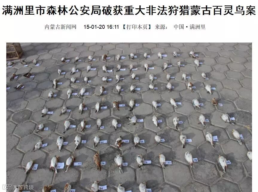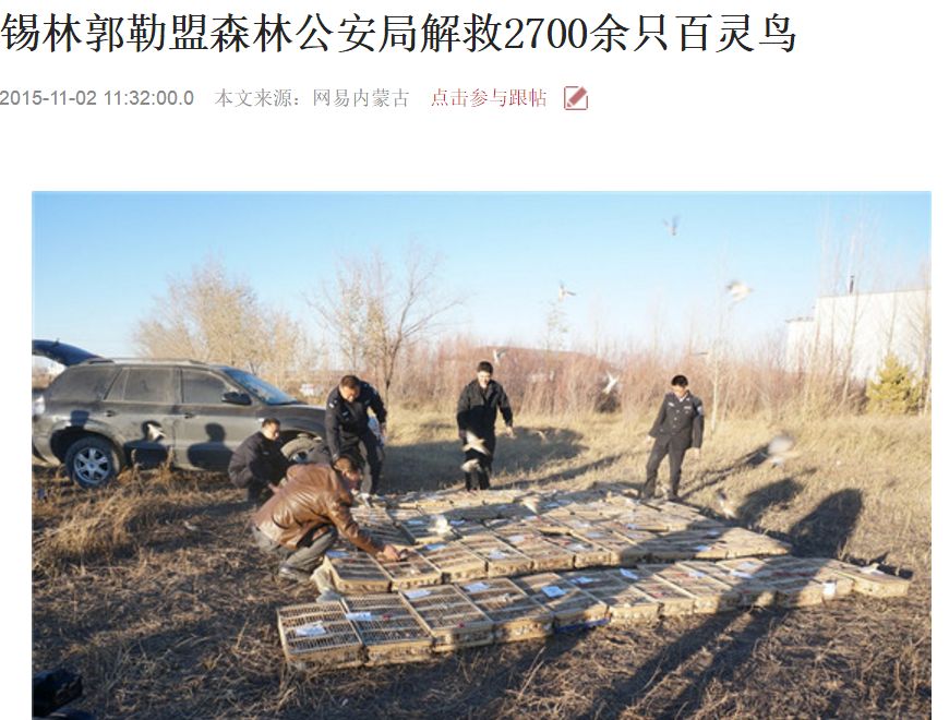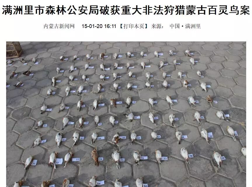 我们看到,内蒙古各地林业执法部门对打击关于百灵鸟的盗猎、运输、贩卖等违法行为采取了一些措施,取得了一定成绩。但是想从根本上遏制违法犯罪还相去甚远,目前这种现象至今在呼伦贝尔,锡林郭勒盟草原仍然尤为严重,比如锡林郭勒正蓝旗、阿巴嘎旗、西乌旗等,乌兰察布的四子王旗、商都、化德,等地已经成为人人皆知的捕捉百灵鸟产地。在内蒙古屡屡发生偷猎百灵鸟的严重事件,严重影响政府生态文明形象。