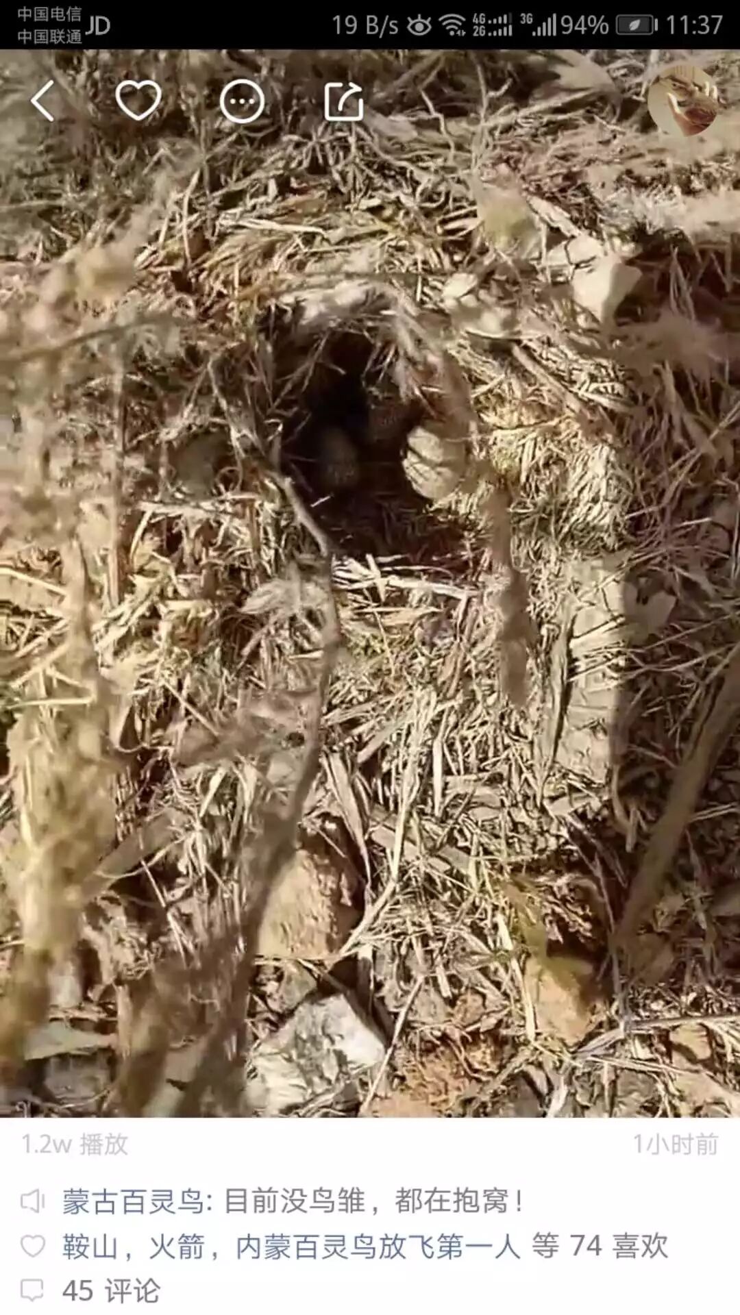 志愿者在视频直播平台发现的盗猎分子炫耀视频。通常,蒙古百灵鸟卵,经过盗猎、人工喂养、驯口,出现在各地鸟市。