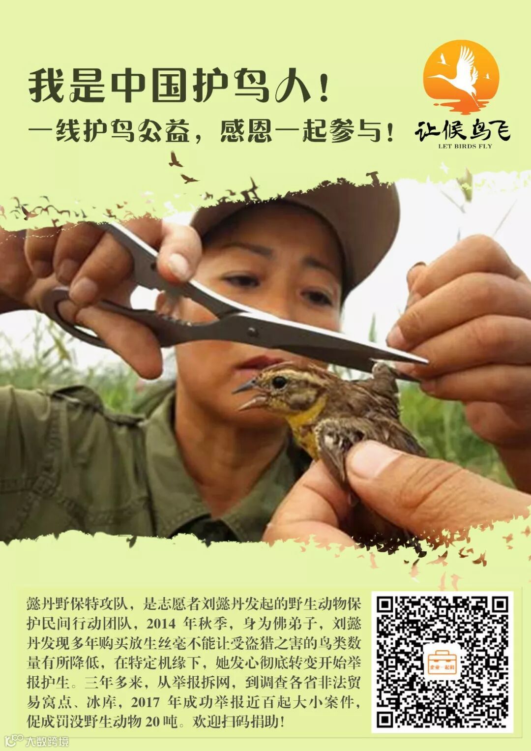 2014年,刘懿丹老师开始走上野保这条伟大但艰险的道路,因为鸟贩告诉她:“……20万只鸟不过冰山一角,天津就有五个鸟站,每天就有几万只。”