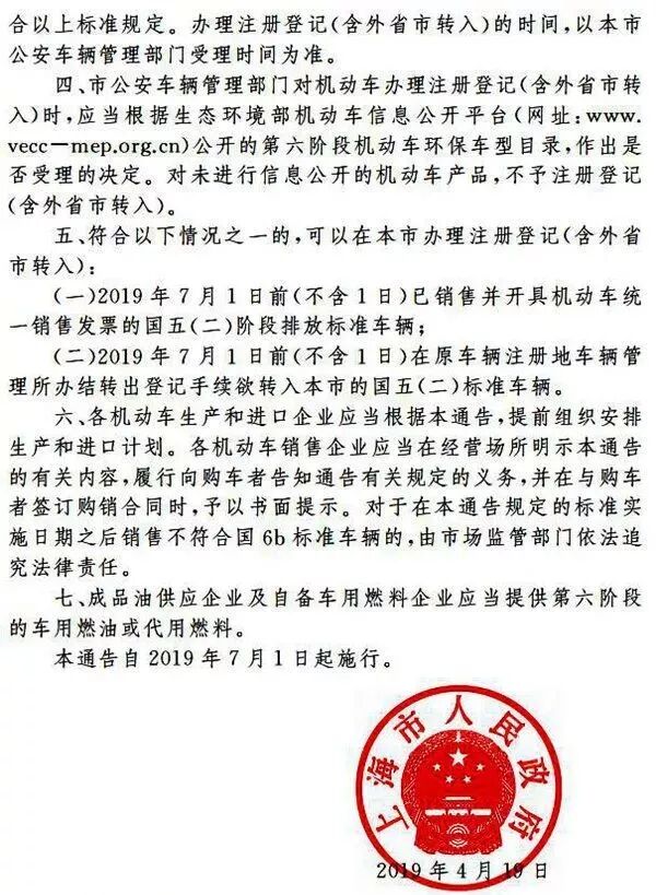 《通告》要求,自2019年7月1日起,在济南市行政区域内进口、销售和注册登记的新生产轻型汽车应当符合国家6a或6b阶段排放标准要求;停止进口、销售和注册登记达不到国家6a阶段排放标准的新生产轻型汽车。
