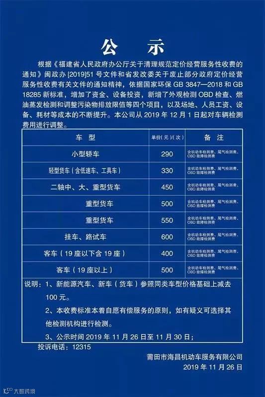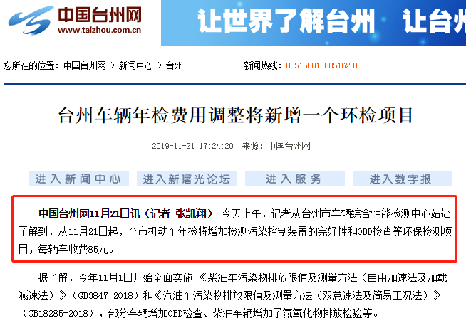 年检费用上涨主要原因就是新增了检测项目——OBD和氮氧化物检测。