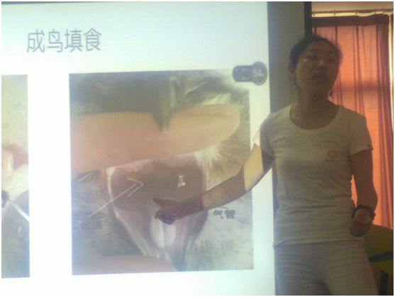 鸟医部负责人张苗用图片展示鸟类舌头根部的气管,在许多案例中容易被误填食,是需要引起特别留意的关键点之一