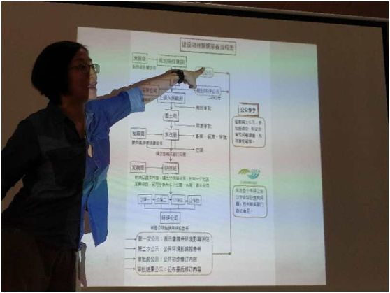 CECA跨境环保关注协会的李文洁分享了他们机构的开放项目日常监测,解读环评制度的流程,在哪个环节最需要社会监督