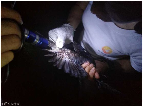 让大家感叹的事,救助培训会结束后,与会志愿者就一起前往广州的鸟网山区,现场解救下一只发冠卷尾。在黑夜的大山里,张苗现场演示了个体检查及放归的正确姿势。