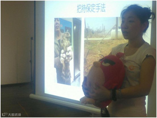 在现场,张苗用大量案例图片,为大家讲解初级救助志愿者在实操时可能遇到的各类问题,用图片对比的方式,介绍正确与错误的做法及手法,借用多个鸟类道具现场演示,如何正确的鸟类保持姿势,还能同时保障病伤鸟和救助者的安全。