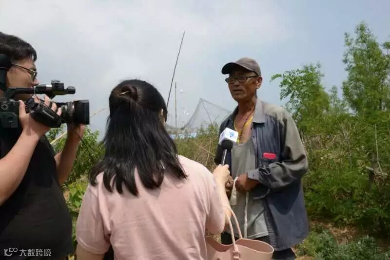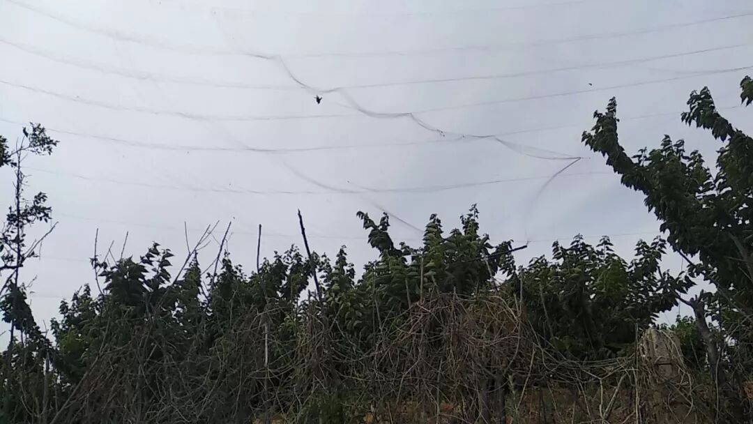 早上9点我们直奔群众举报的发现鸟网的甘井子区营城子街道的石门沟村,沿路路过了20多个果园都没有使用粘鸟网,而是用的驱鸟网。驱鸟网为PE材质,网绳粗,没有网兜,鸟撞网以后会弹开,不会对鸟造成伤害,面积大可以覆盖整个果园,5年以上不用替换,防护效果可达100%,可以说是一劳永逸,价格也亲民,淘宝上每平米的价格为0.3-0.4元。