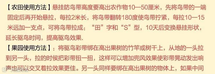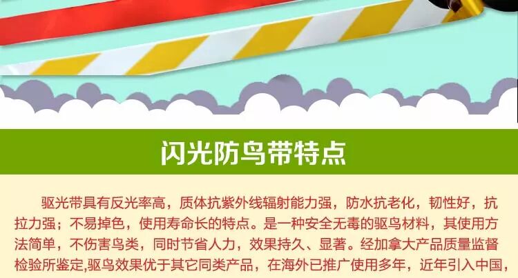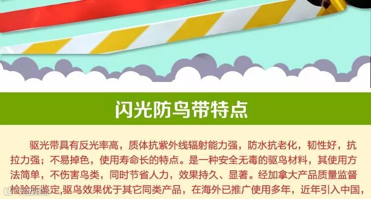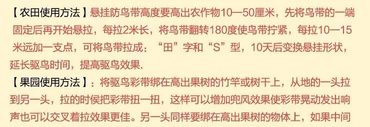 驱鸟彩带的驱鸟原理是利用自然风吹动彩带闪光和发出声响,让鸟儿害怕,从而不敢接近果树,效果也非常好,在全国的其他地区已经大面积推广使用。