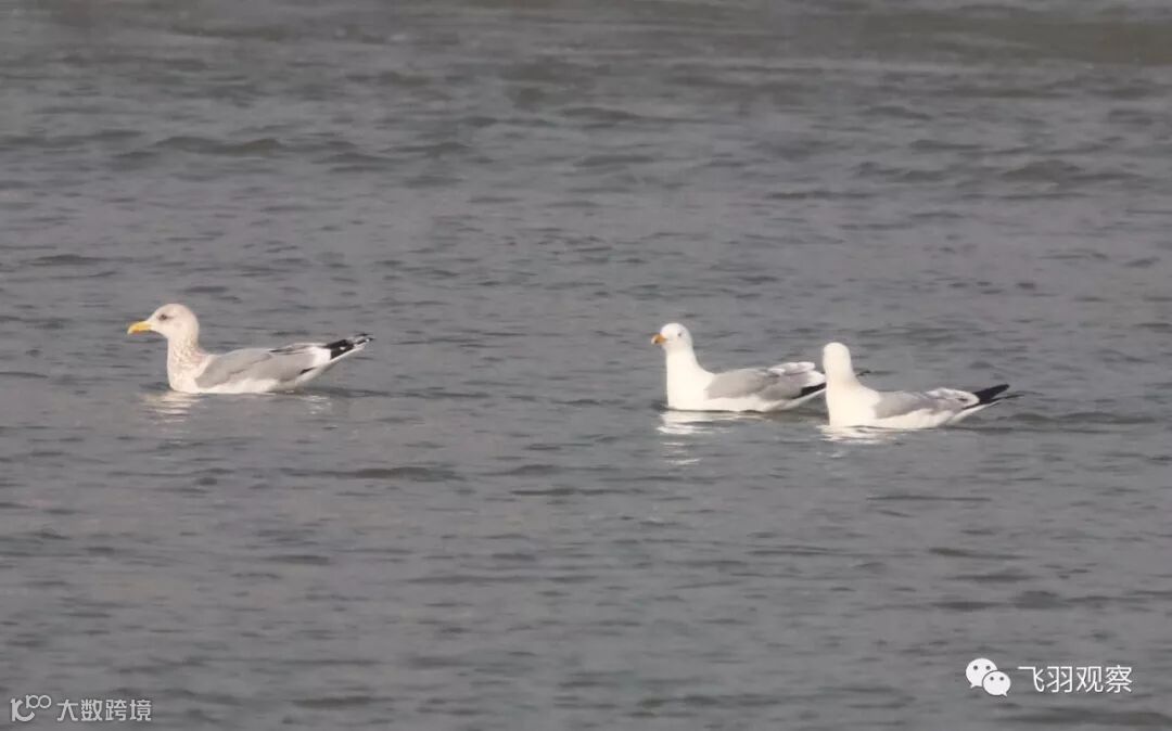 游在最前面的西伯利亚银鸥比较怕冷,出门还带上了浅褐色的波点围脖
