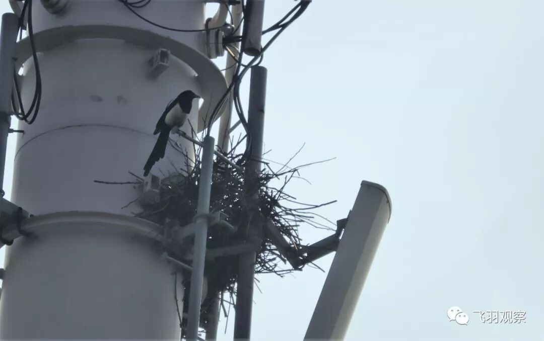 喜鹊老远的衔了枯树回来,精心打造爱巢