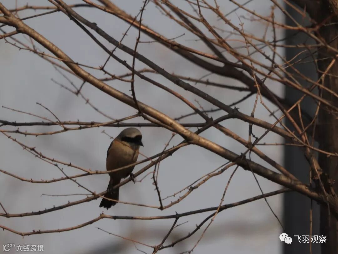 树枝间的棕背伯劳正聚精汇神的凝望着地面,高高的位置方便带墨镜的它找到食物