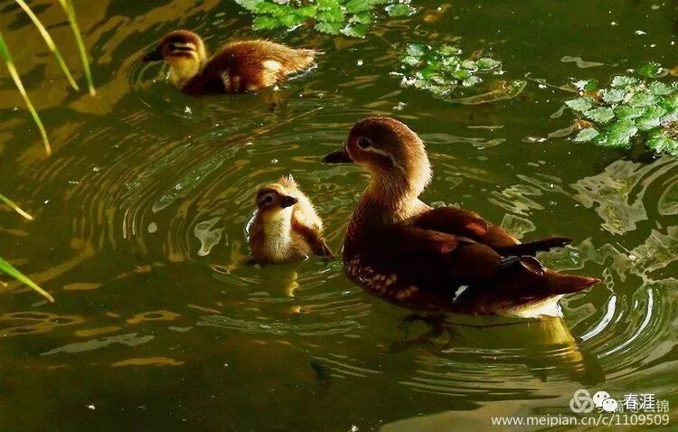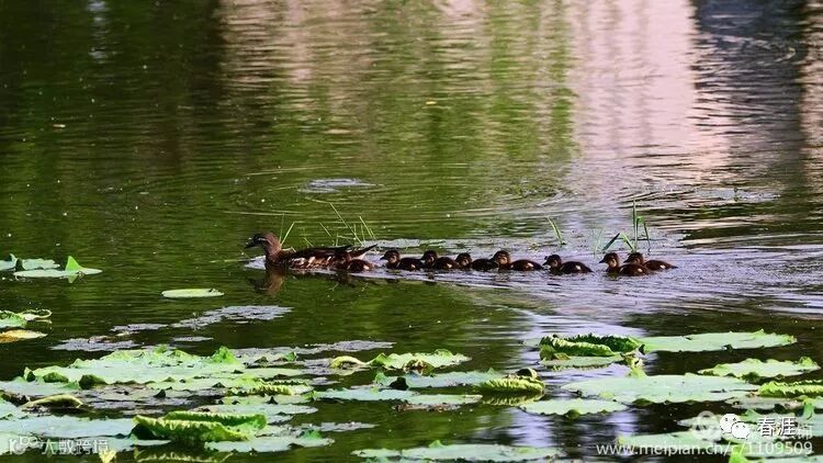 情侣园的这只鸳鸯妈妈一只鸟含辛茹苦地带着八个娃,后来很不幸,有一只雏鸟夭折了。