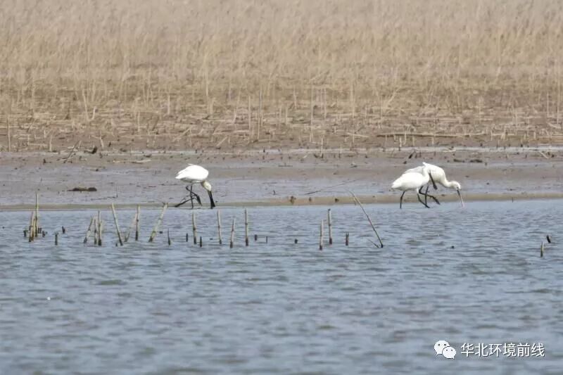 平山县小分队巡护冶河湿地,多只鸟在冶河中嬉戏。平山县小分队陈飞喜欢摄影,并在工作之余拍摄了多组冶河、滹沱河中的各种鸟类。其中包括国家二级保护动物大白鹭、国家一级保护动物白鹤等。