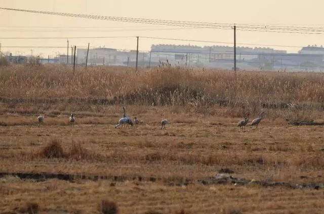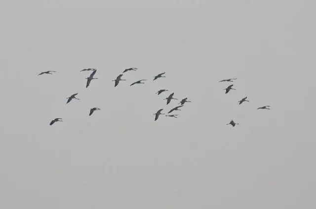 今年冬天冷得比较晚,北方的老师和朋友们都反映今年鹤类迁徙的比往年晚,因此直到12月中旬,我们都没有发现超过50只的灰鹤种群。