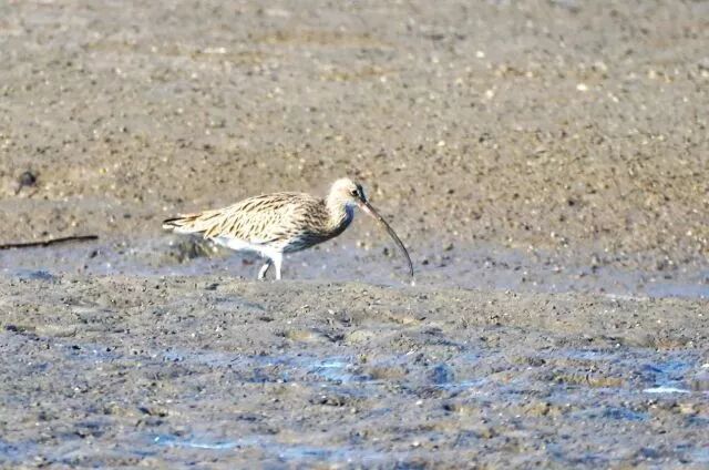 泥滩上觅食的白腰杓鹬,有相当数量的白腰杓鹬在这个区域越冬,整个冬天我们都能看到TA们的身影