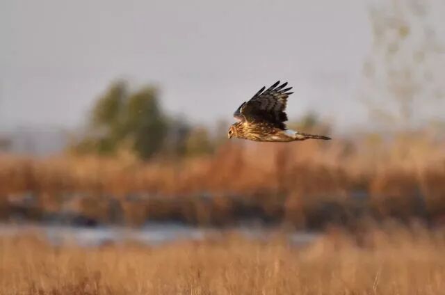 正在找寻食物的白尾鹞雌鸟,初冬季节食物比较匮乏,祝福她觅食顺利