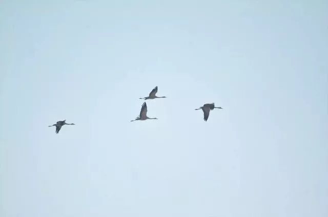 下午1点左右,首先在前一天的海岛上空,发现7只飞行中的灰鹤