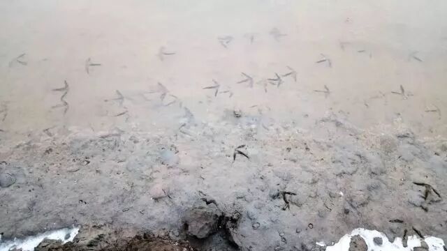 通过这些脚印可以了解到一个小型的鹤类种群曾经在这里活动,但个体数量并不是太多。同时,通过脚印的深度,可以看出这个区域在涨潮时,潮水可以进来,虽然这里是岛体的内部区域,以往的养虾池尚遗留着这种与海水的连通性。