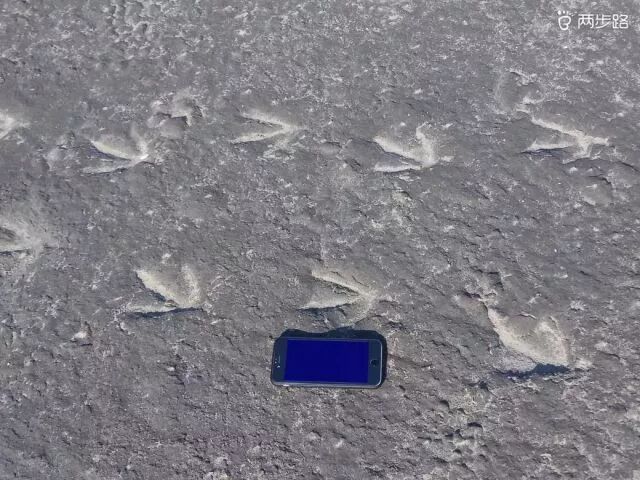 最大的脚印,几乎与Iphone6等长,预估脚趾长度约11厘米,专家估计很有可能是白鹤
