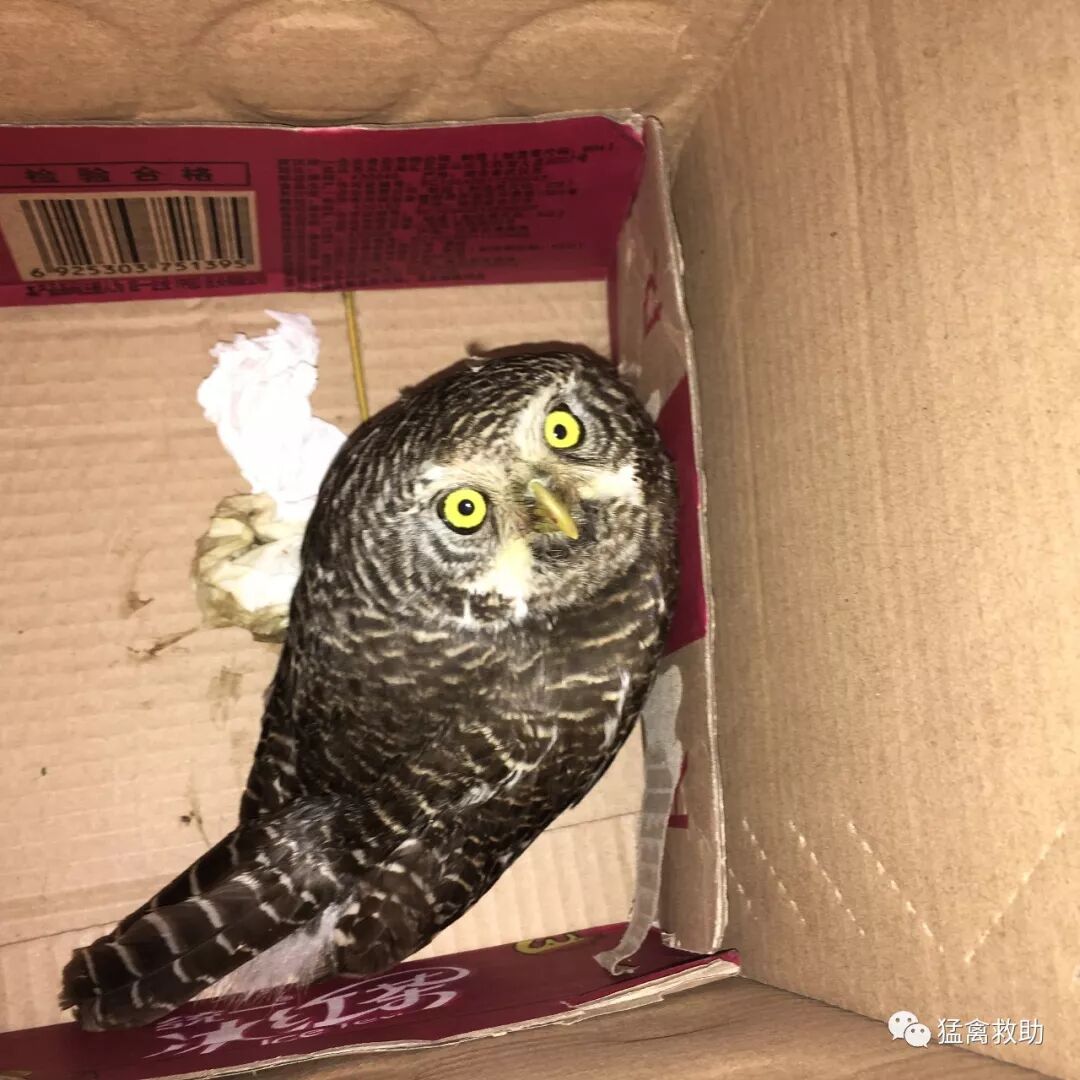 随后,会长立即和鸟会的小洪取得联系,告诉这个情况后,小洪立即开车半个小时赶往琴台大剧院,与会长会和,其中一只鸺鹠身上的水被会长擦干了,身上的羽毛已经差不多干了。