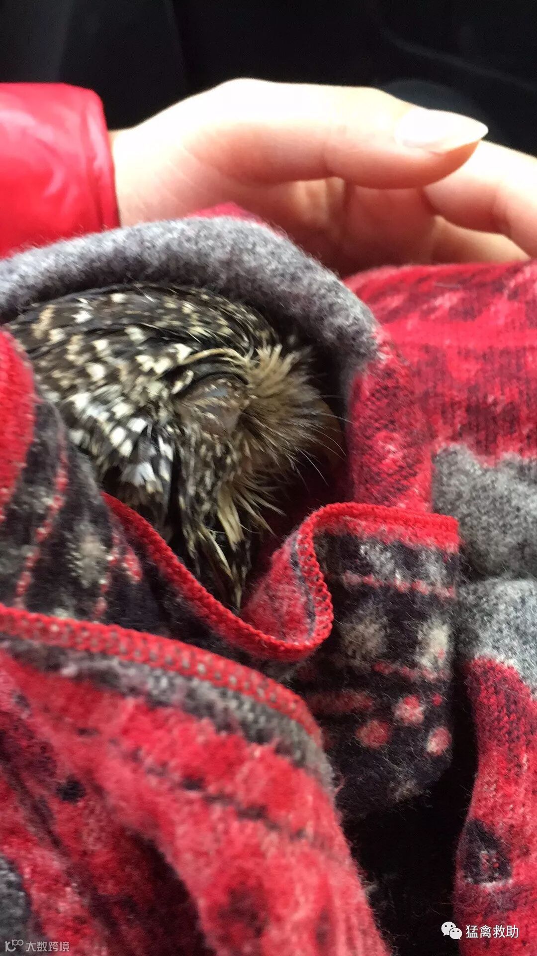 见此情景,会长立即劝阻了这一行为,告诉他们鸺鹠属于国家二级保护动物,私人饲养是犯法的,并用围巾包住了这只小鸺鹠,希望能让小家伙更加暖和。冷的发抖的小鸺鹠